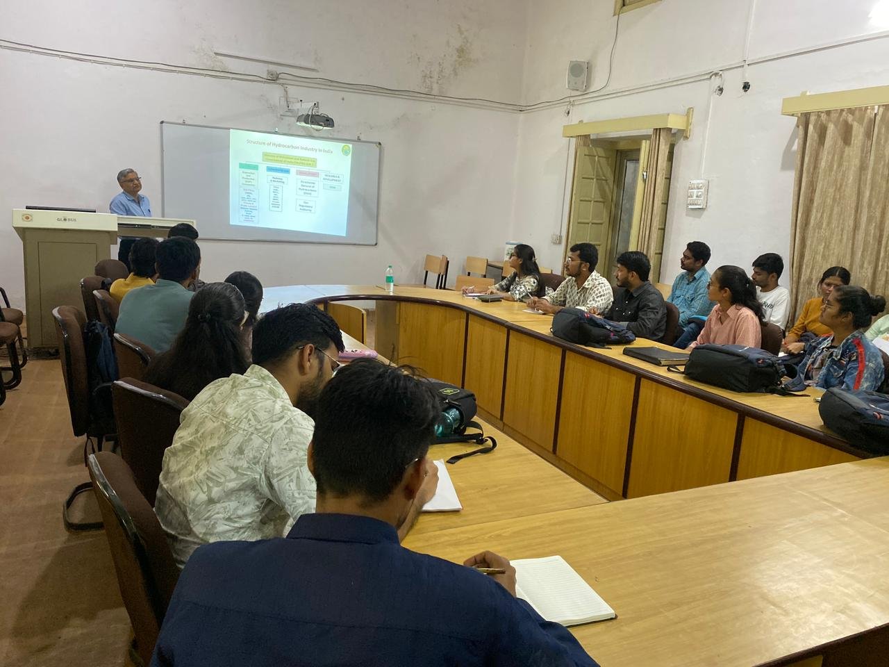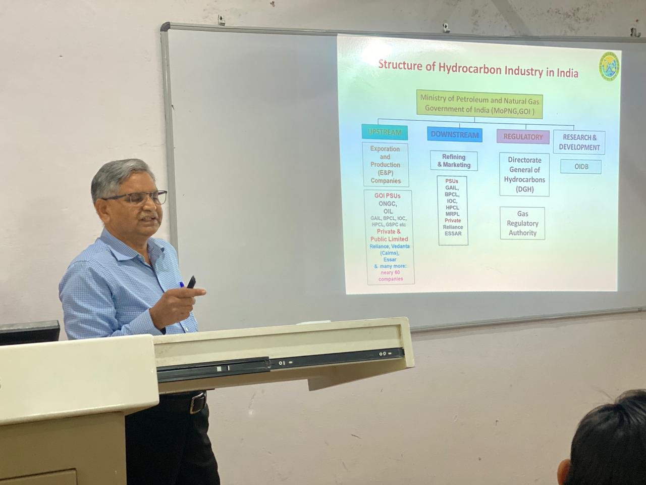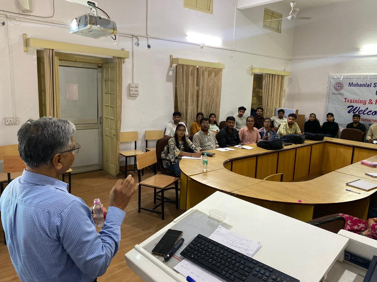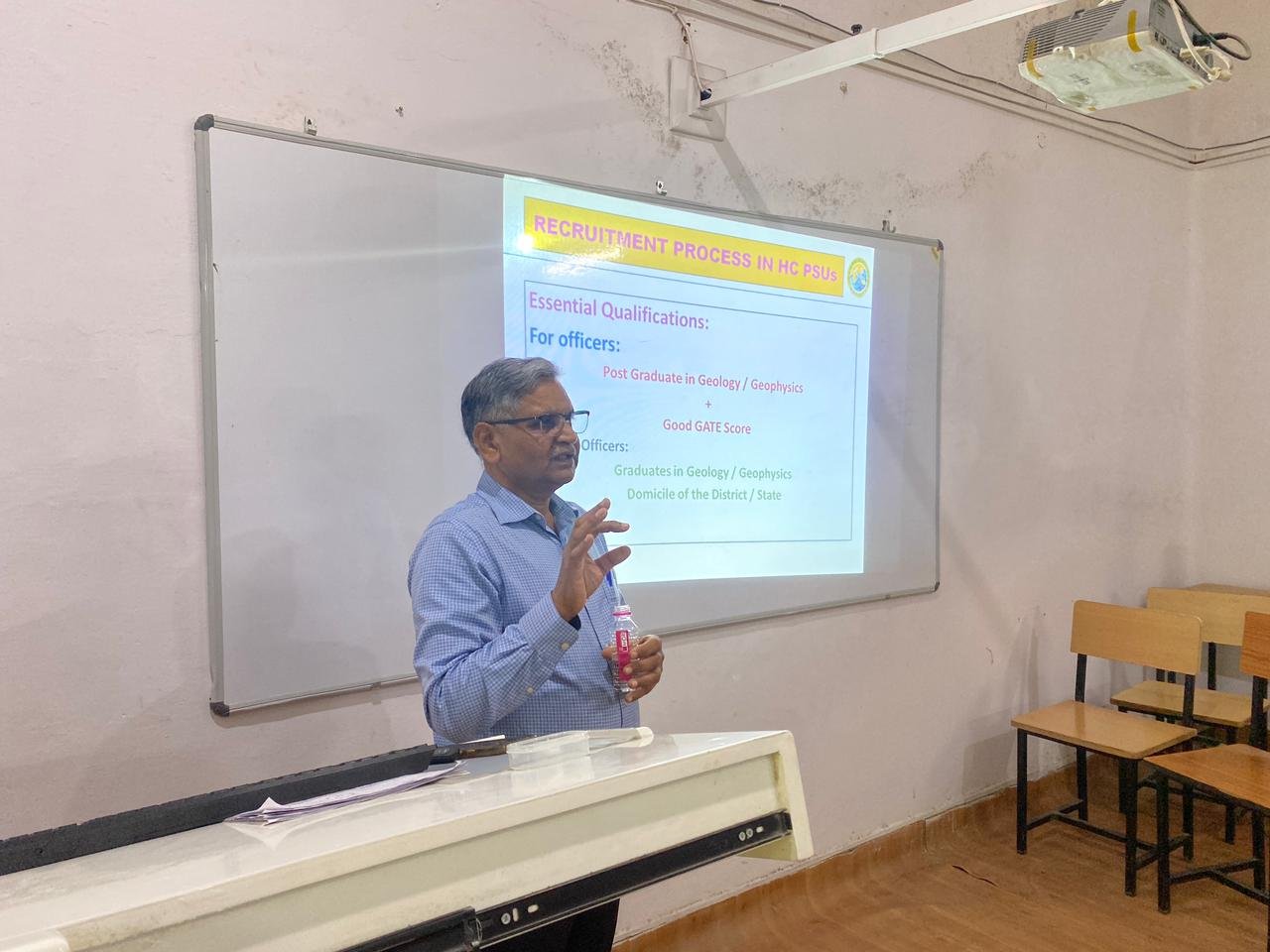 Dr. Ritesh Purohit , HEAD, Geology Department, Mohanlal Sukhadia University, Udaipur on 07.10.2025 requested to the Secretary, Geoscientists Society for a lecture on How to face job / Placement interview during a seminar to be held in the Department on 3-4 November, 2025 . Sh Purohit was immediately informed that Shri KL Jagetiya, Ex-Group General Manager, ONGC, will be available for delivering a talk/ lecture during the seminar/ workshop with special reference to Petroleum sector. Accordingly Sh KL Jagetiya, on 3rd November, 2025 delivered an interactive presentation for about 2 hours on “Petroleum sector in India” and “how to face job interview in the Petroleum sector of India” in Geology Department, Mohanlal Sukhadia University, Udaipur. The discussion was well received by the Students and faculty members of the department. The approach was to provide a teaser to M.Sc. final year and M.Sc.Tech students to learn more about the Petroleum sector and job opportunities in India and abroad. Since, the workshop was interactive; the question-answer session was conducted with the students, probable questions in the Oil sector job interview for geologists were also shared with the students. HOD Dr. Ritesh Purohit, Lecturers Dr. Mrs Neha Rarh and Dr. S.C. Janagal conveyed thanks to the “Geoscientist Society of Rajasthan” for facilitating a talk/ lecture in the Workshop and experience sharing by its member Shri K.L. Jagetiya.
