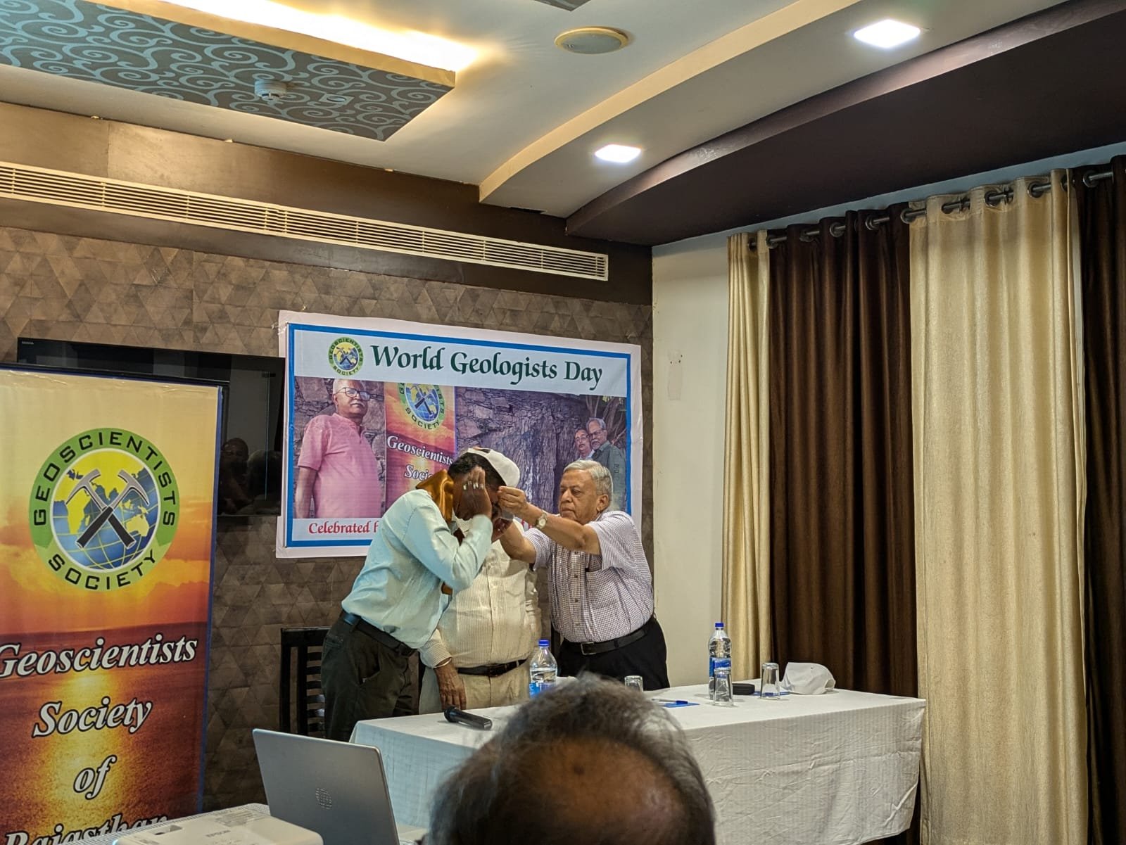 राजस्थान भू-वैज्ञानिक सोसायटी ने विश्व भू-वैज्ञानिक दिवस, अप्रैल के पहले रविवार , दिनांक 06.04.2025 को विश्व भू-वैज्ञानिक दिवस मनाया। अध्यक्ष श्री ओ.एस. सिरोया ने सभी सदस्यों का स्वागत किया। सदस्यों को मध्य प्रदेश की केवड़िया पहाड़ियों के पोटला कोलम्नर जोइंट पर एक वीडियो फिल्म (https://youtu.be/Rk2ZuW5hgnA?si=ql6MljfEOfy3Fbg8) दिखाई गई, जिसमें क्षैतिज से अधो क्षैतिज स्तंभ जोड़ों की अनूठी विशेषता है। इसे भू-पर्यटन स्थल के रूप में विकसित किया जा सकता है। सदस्यों को फतेहसागर के आसपास फ़ोल्ड और रिप्पल मार्क जैसी कुछ भू-वैज्ञानिक संरचनाओं की स्लाइड भी दिखाई गई और उन्हें भू-पर्यटन स्थल के रूप में विकसित करने पर चर्चा की गई। कार्यक्रम का समापन पिछले वर्ष सोसायटी के दिवंगत सदस्यों के प्रति संवेदना के साथ हुआ। कार्यक्रम का संचालन सचिव डॉ. एम.के. सोमानी ने किया।